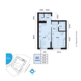 Общая площадь 53.00кв.м.;