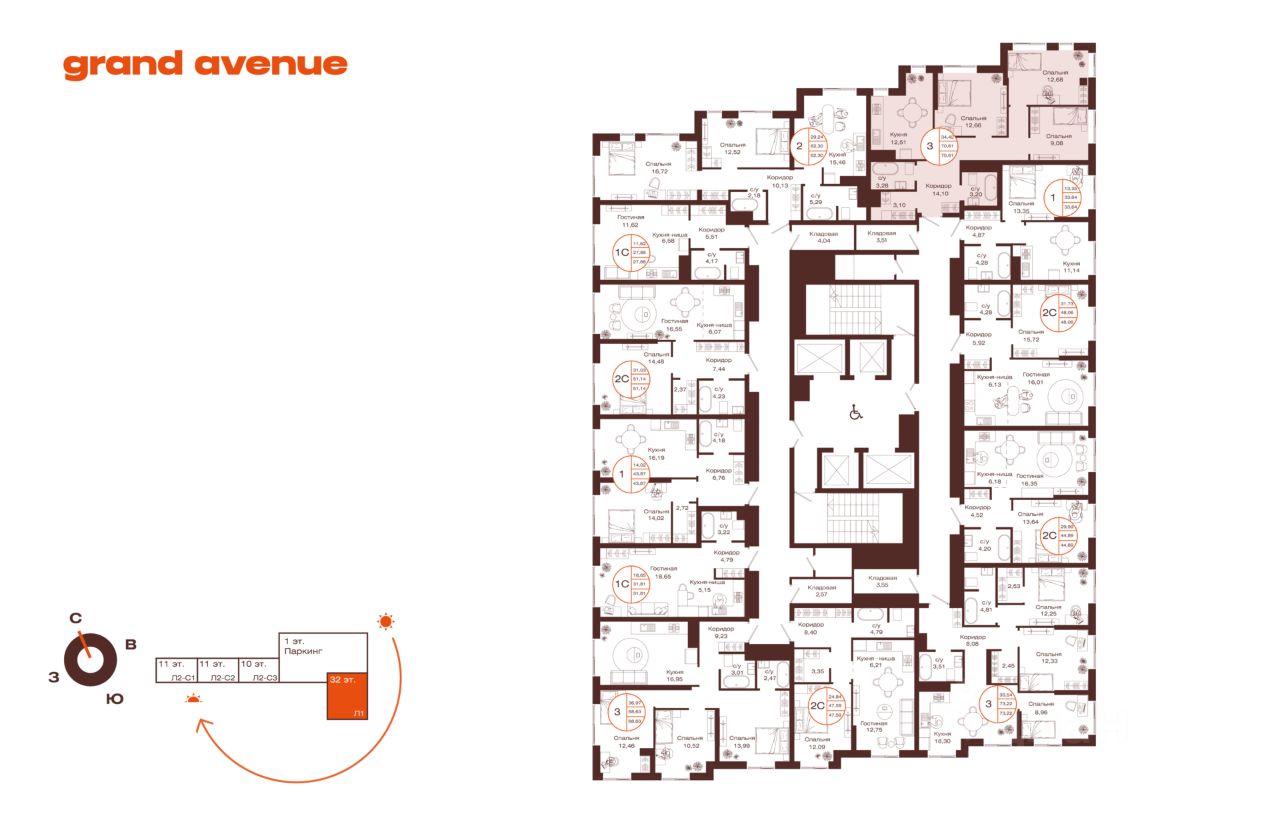 Литер 1, Секция 1. 11-й этаж 32- этажного жилого дома
