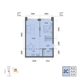 Общая площадь 55.56кв.м.;