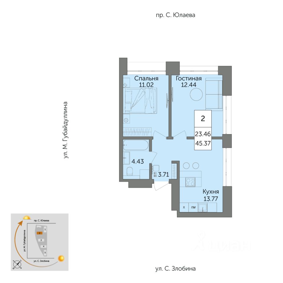 2-к квартира в ЖК Урбаника;