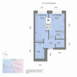 Общая площадь 45.37кв.м.;