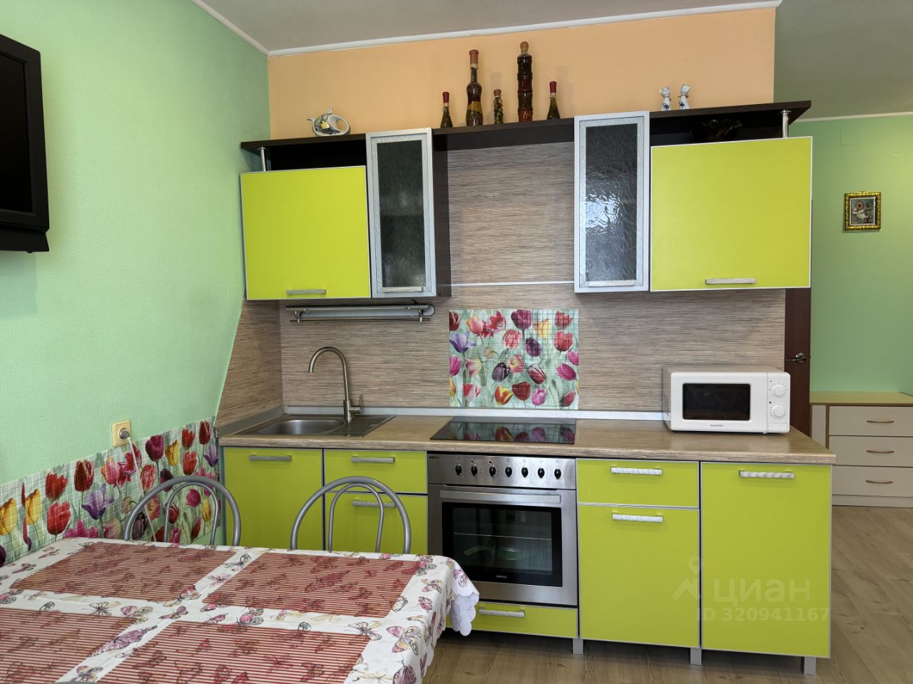В этой квартире все продумано до мелочей для вашего комфорта: четыре спальных места большая двуспальная кровать и раскладывающийся диван, кухонная зона со встроенной техникой, есть микроволновая печь, холодильник и стиральная машина.