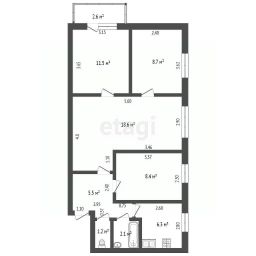 Планировка квартиры функциональна и позволяет комфортно разместить семью. Большие окна обеспечивают хорошее естественное освещение в течение дня. Общая площадь помещения и грамотная зонировка создают условия для удобного проживания.
