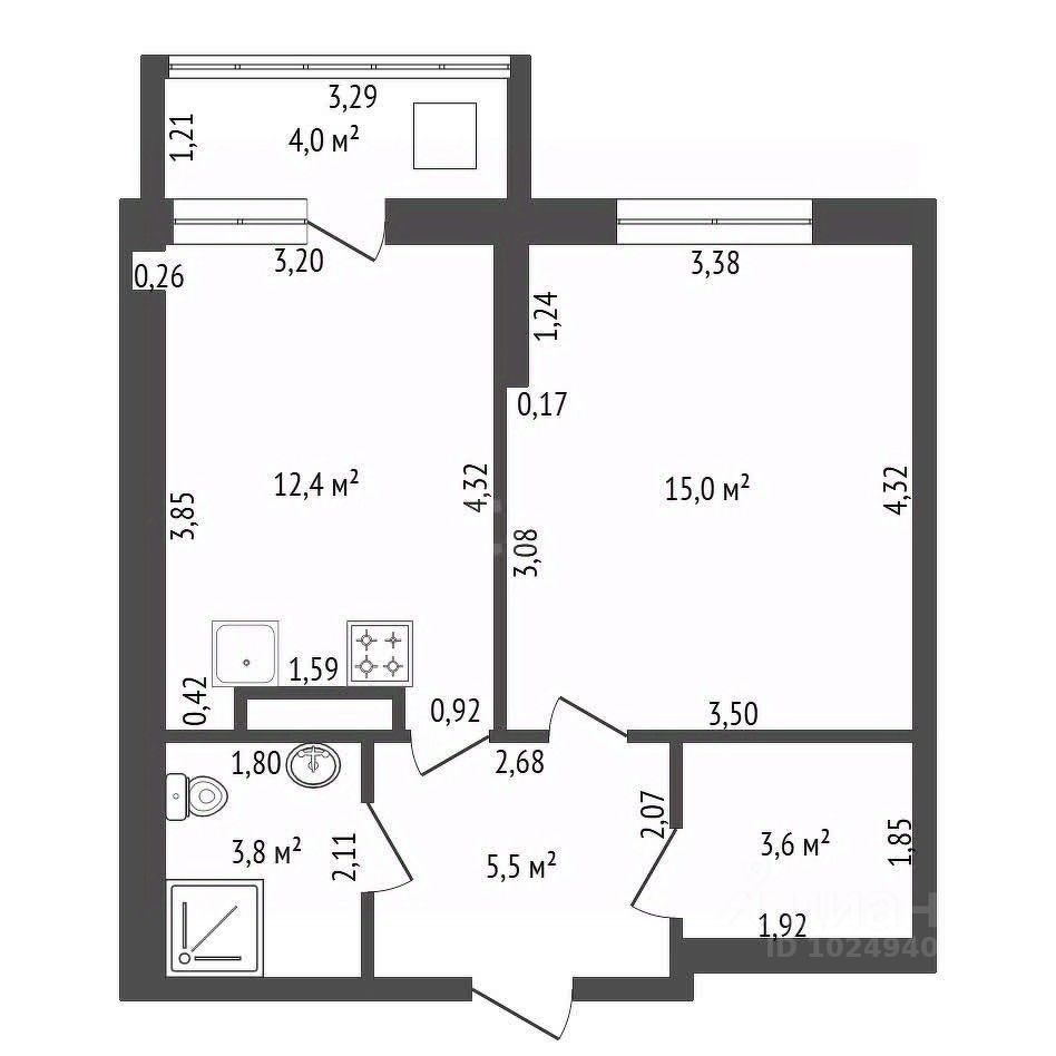 Площадь квартиры 42 м2