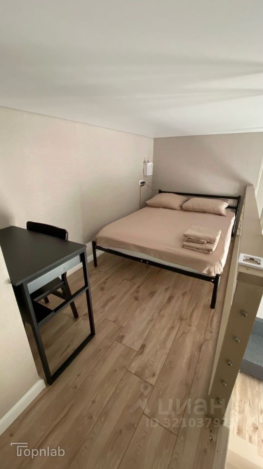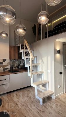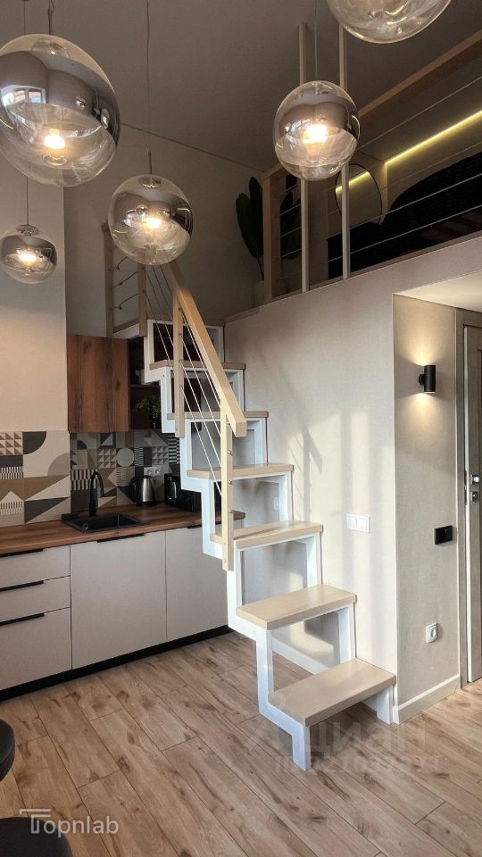 Особый шарм студии придают высокие потолки (3 метра), добавляют воздуха и света, а функциональное спальное место на втором этаже делает проживание еще более комфортным.