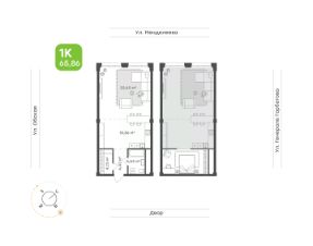 Кухонная зона 18,86 м2 с возможностью зонирования пространства на обеденную зону и зону отдыха
