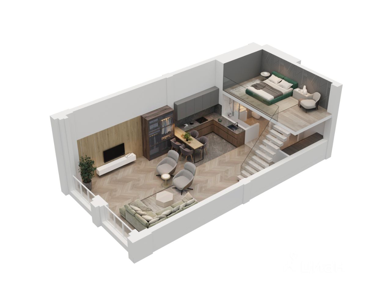 Большая лаундж-гостиная 33,4 м2. Это отличное место для дружеских посиделок или совместном приготовлении ужина со своей второй половинкой