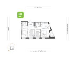 • Трехкомнатная квартира для семьи с двумя и более детьми 89,1 м
