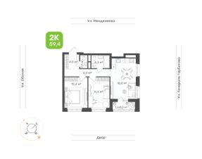 • Двухкомнатная квартира для семьи или молодых людей 59,4 м