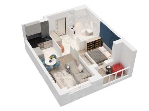 • Аутентичная однокомнатная квартира для семейной пары или молодых людей 38,4 м