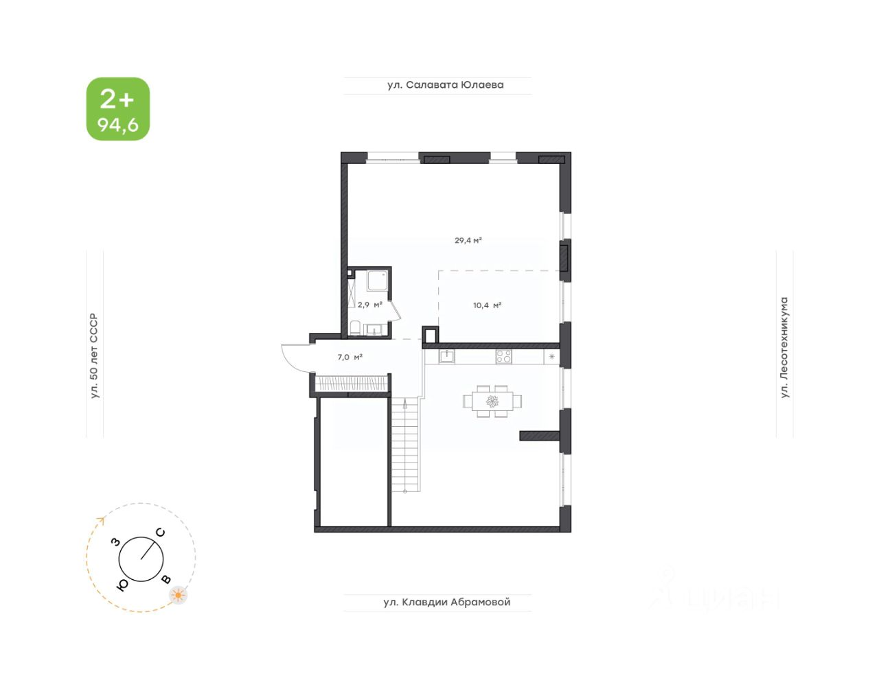 Два входа: отдельный с улицы и через подъезд