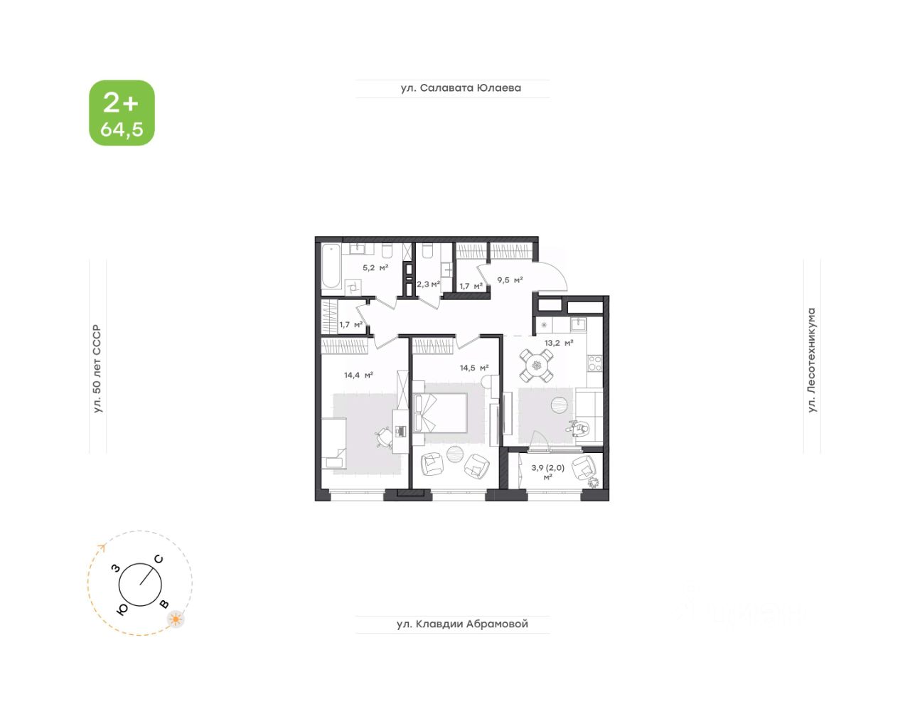 Родительская и детская спальня правильной геометрической формы позволяет легко и функционально расставить мебель.