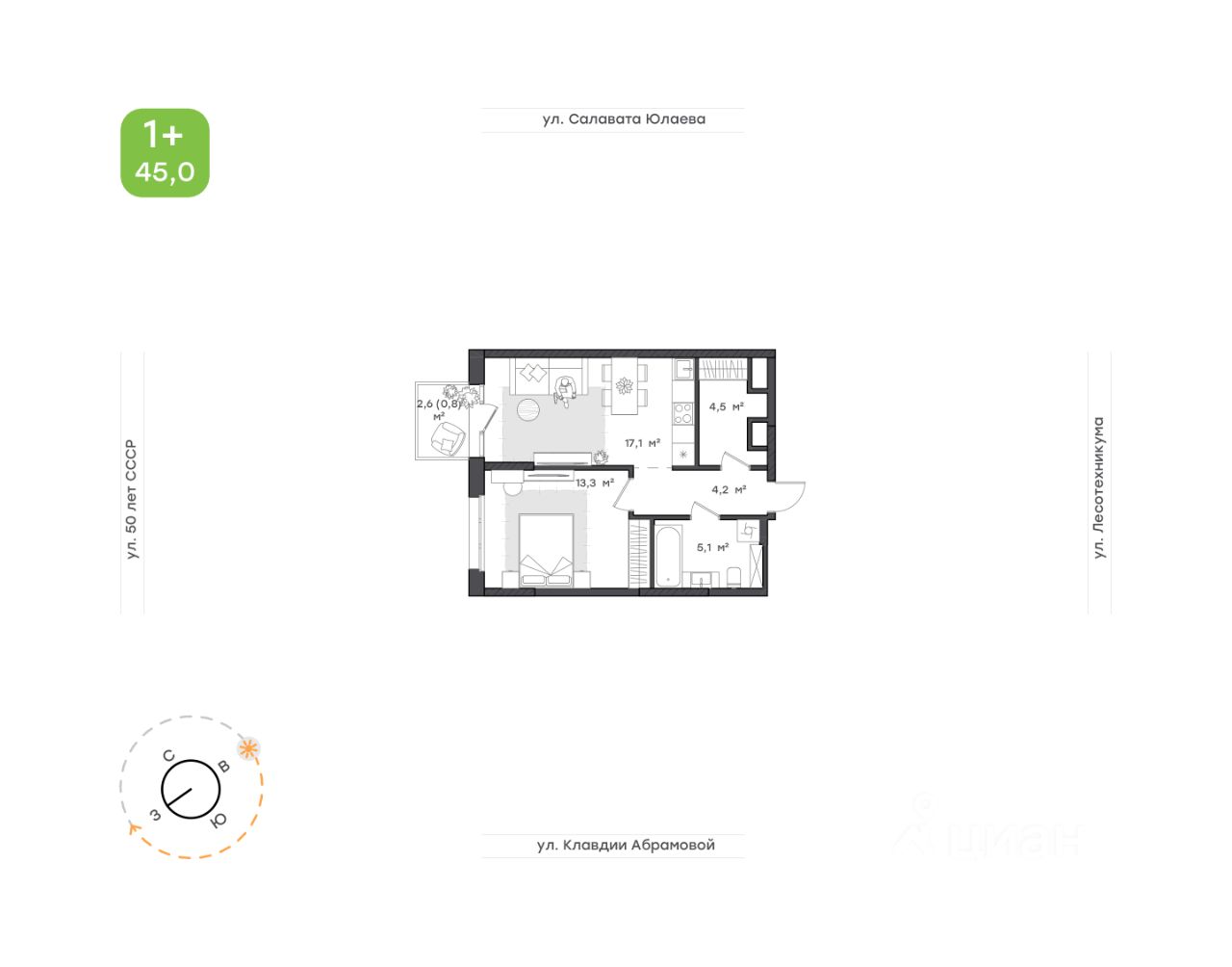 45 м²