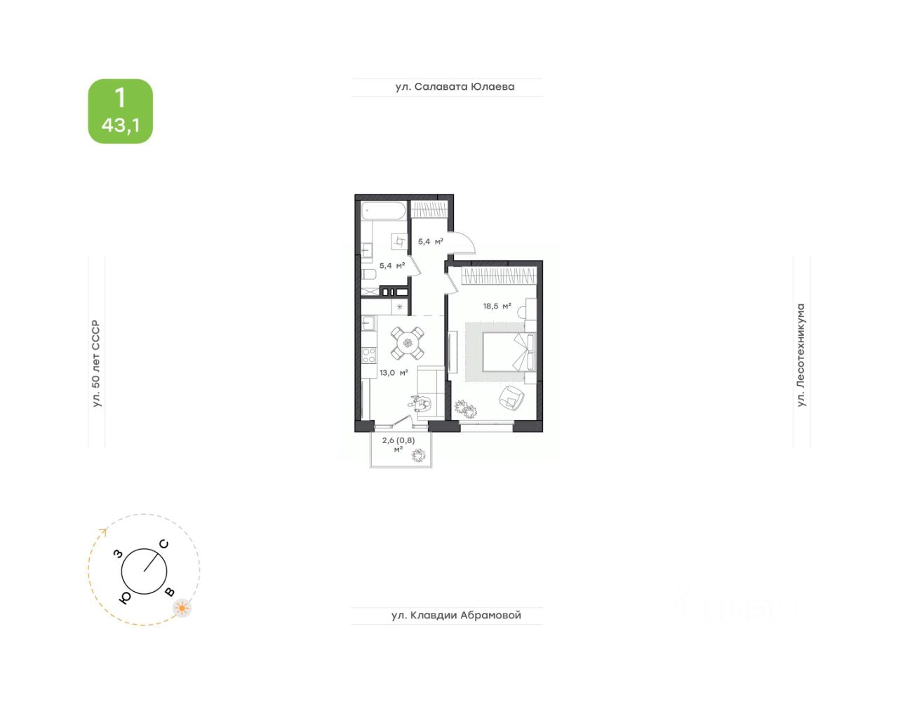 43,1 м²