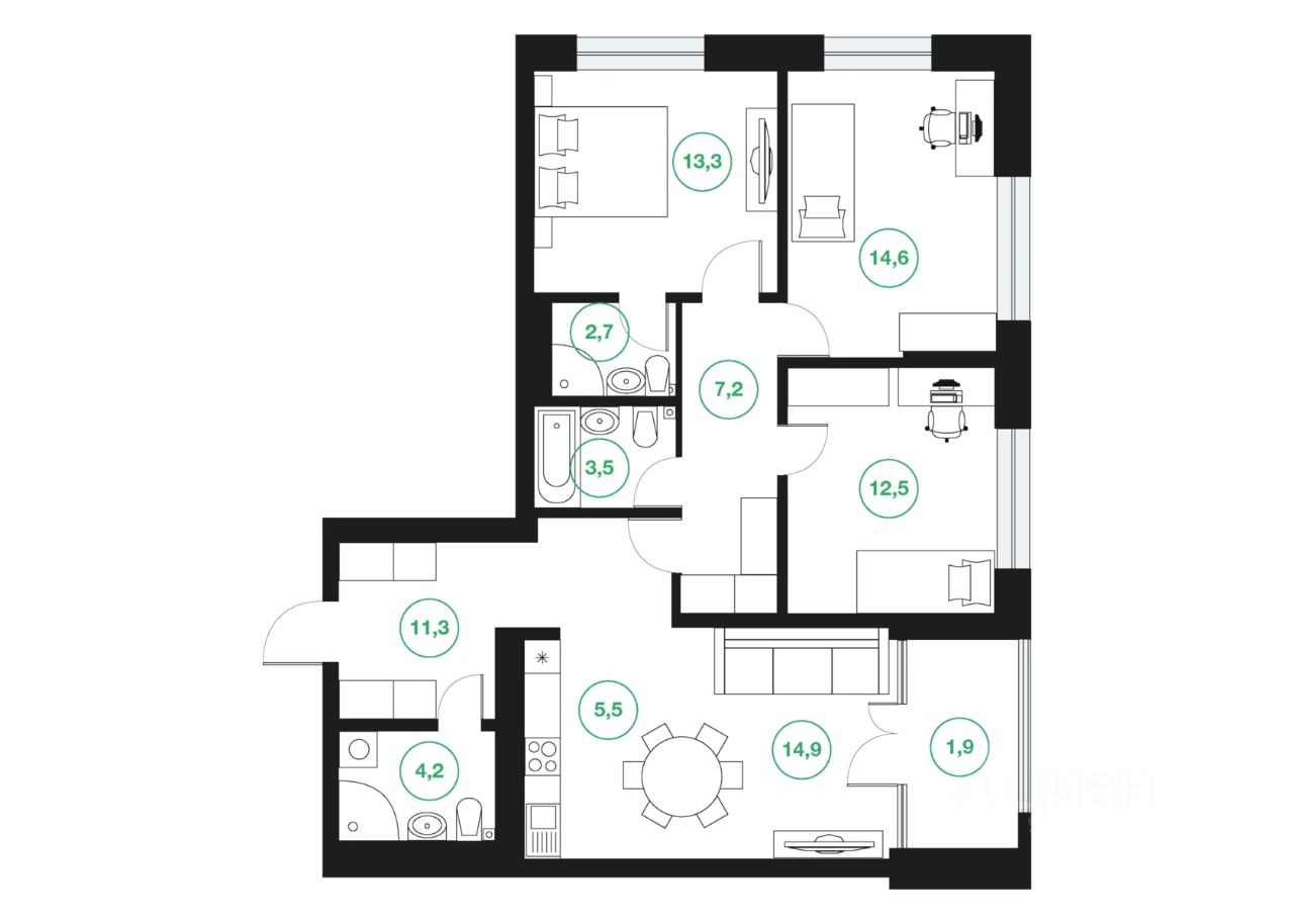 Продаётся 4-комнатная квартира в сданном доме (Дом 134), срок сдачи: III-кв. 2025, общей площадью 91.6 кв.м., на 17 этаже. Новый жилой комплекс "Greenwich" от застройщика "ЖК Зеленая роща" расположен по адресу город Уфа, улица Менделеева.