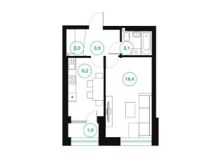 16,4 м²