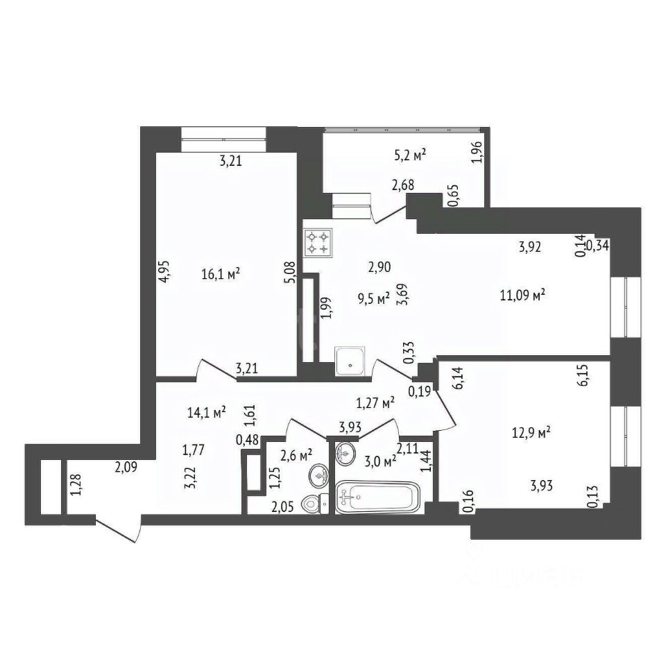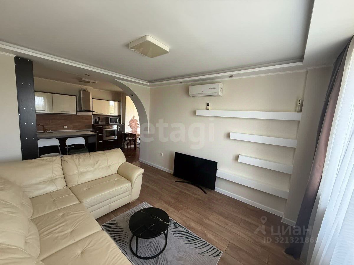 Квартира с интересной планировкой: просторная кухня-гостиная, две изолированные комнаты, в квартире выполнен современный ремонт, из мебели остаются кухонный гарнитур, духовой шкаф, варочная поверхность-индукция, кондиционер, шкафы-купе.