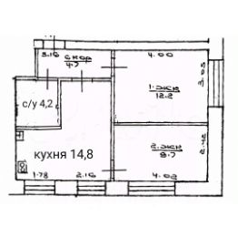 Трехкомнатная квартира, расположенная по адресу: ул. Блюхера, д. 42/1. 4\5 этажность. Общая площадь 42, 2 м2.