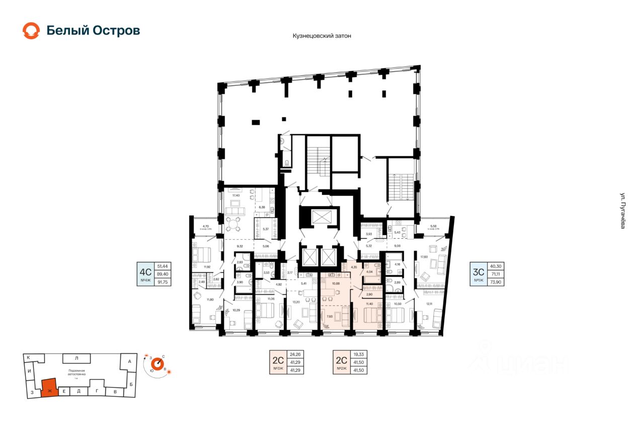 Литер 1, Секция Ж. 2-й этаж 23- этажного жилого дома