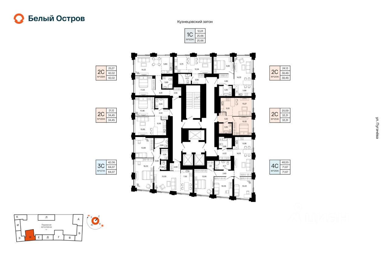 Литер 1, Секция Ж. 19-й этаж 23- этажного жилого дома