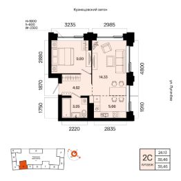 Жилая площадь 24.13 кв. м. от ГК "Первый Трест".