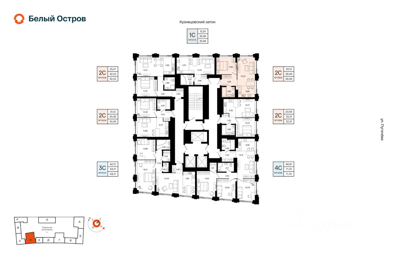 Литер 1, Секция Ж. 21-й этаж 23- этажного жилого дома