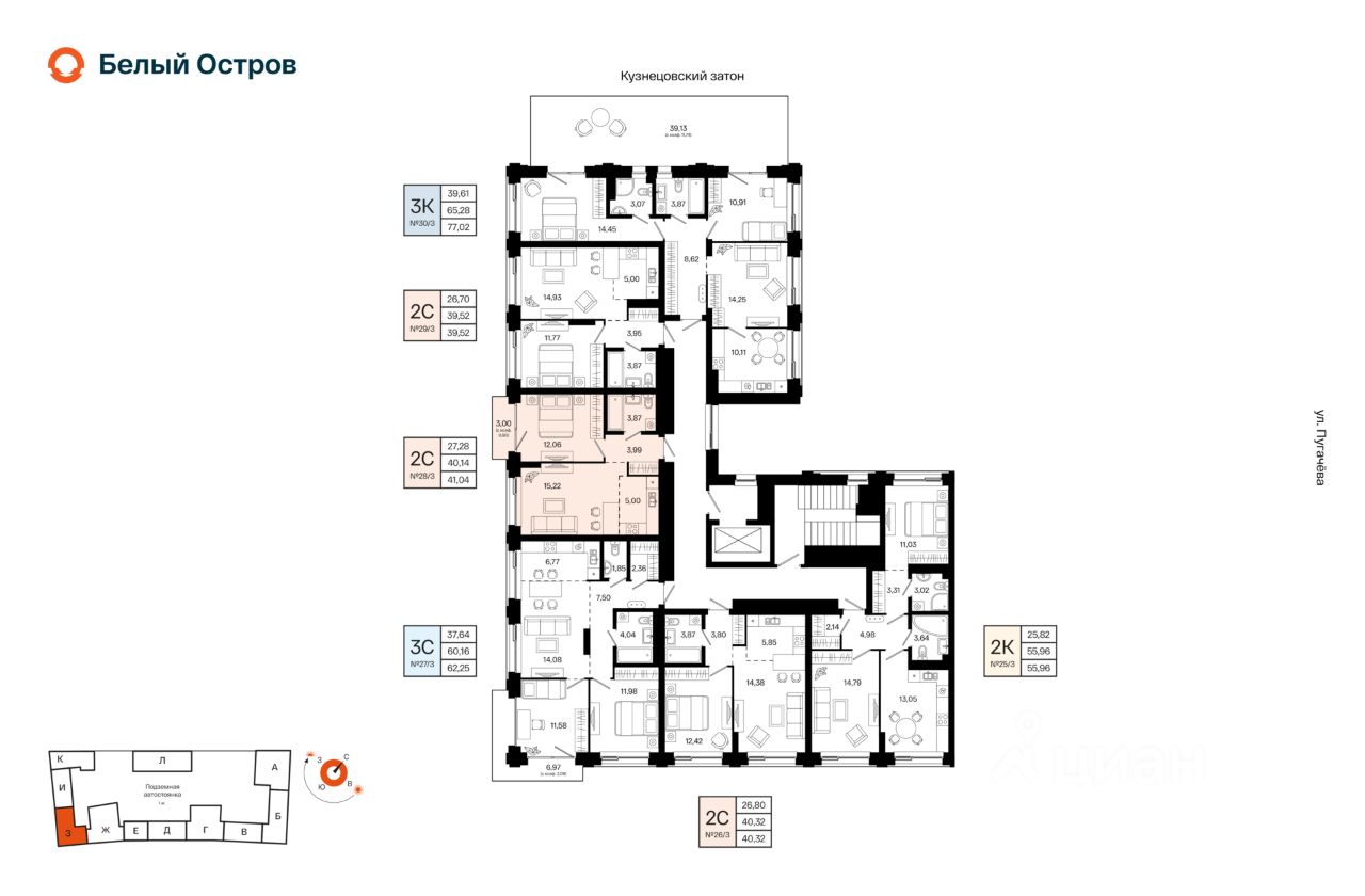 Литер 1, Секция З. 6-й этаж 7- этажного жилого дома
