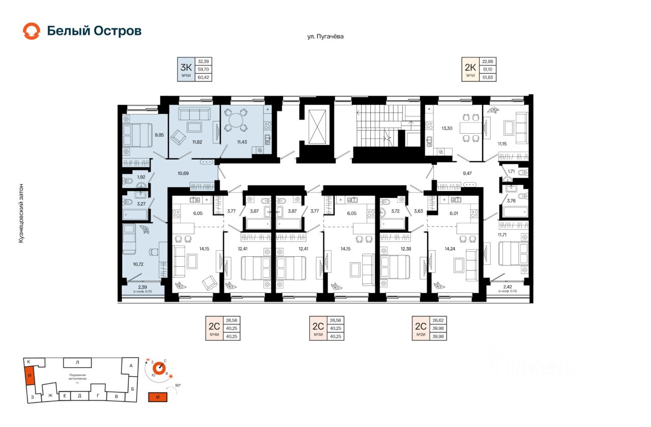 Литер 1, Секция И. 2-й этаж 5- этажного жилого дома