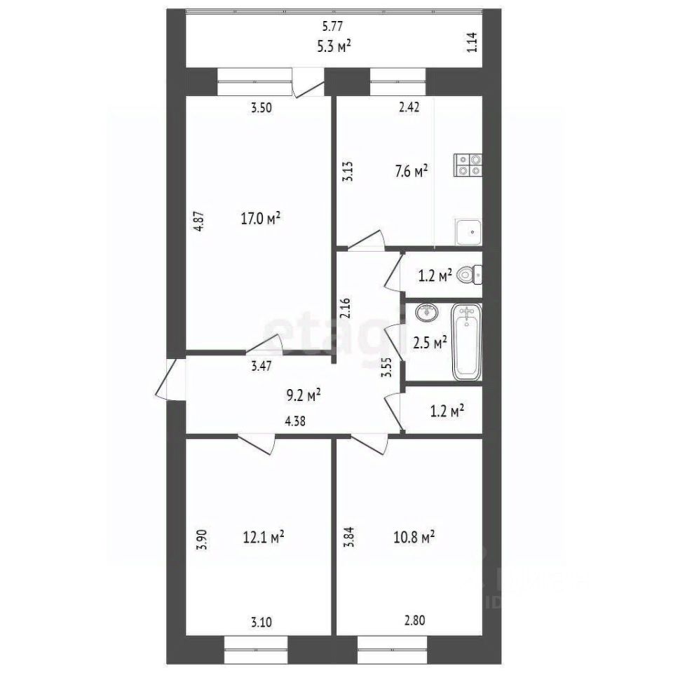 7,6 м²