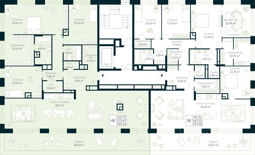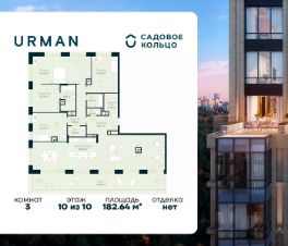 Продается квартира в ЖК Urman City с 3 спальнями на 10 этаже 10 этажного дома. Общая площадь: 182.64 кв.м. Высота потолков 3.4 м. Срок сдачи 2 квартал 2026 г. Окна выходят на 3 стороны. Вид во двор. Мастер-спальня. Терраса. Вид на лес. Вид на воду. Камины + зенитные фонари. Эскроу-счет. Застройщик ГК "Садовое кольцо".
