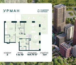 Продается квартира в ЖК Urman City с 2 спальнями на 1 этаже 10 этажного дома. Общая площадь: 149.79 кв.м. Высота потолков 2.7 м. Срок сдачи 2 квартал 2026 г. Окна выходят на 2 стороны. Сауна. Мастер-спальня. Патио. Вид на лес. Угловое остекление. Окно в ванной. Двухуровневая квартира. Эскроу-счет. Застройщик ГК "Садовое кольцо".