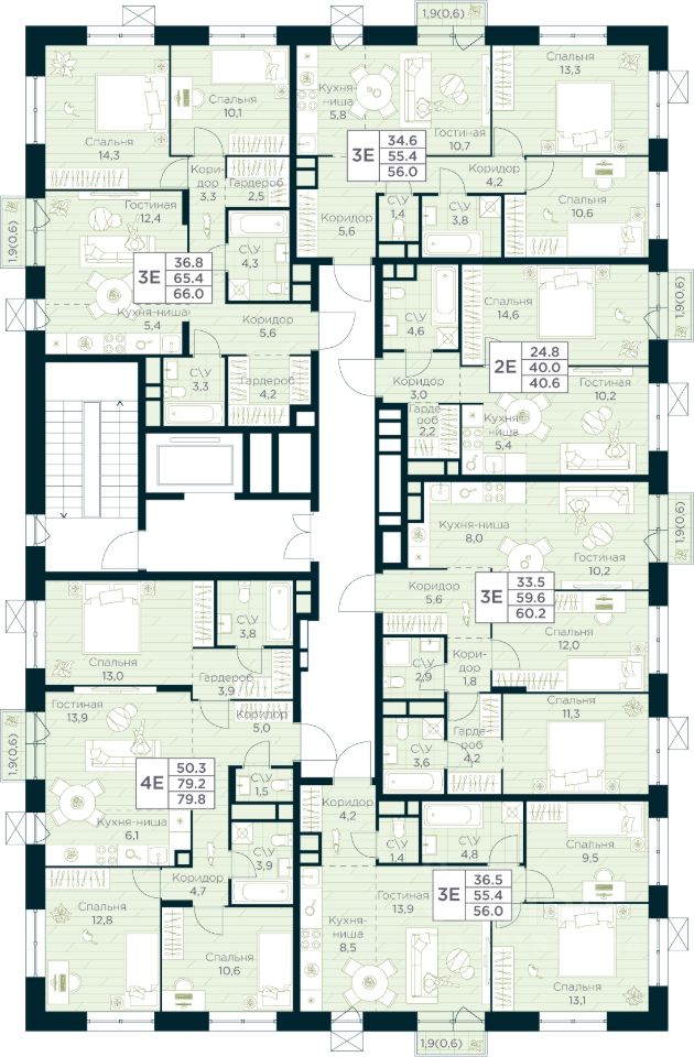 Неоклассические пропорции, игра стекол и оттенков кирпича, вдохновленная североевропейскими мотивами, создают уникальный облик комплекса. Разновысотные корпуса открывают впечатляющие виды на лес и реку, делая каждый дом по-настоящему особенным.