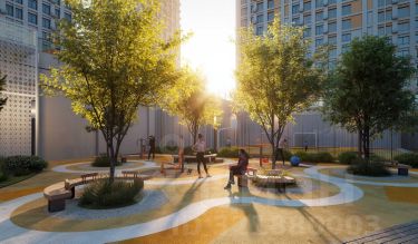 Внутренняя территория представляет собой уютный парк для жителей, где всё продумано до мелочей. Закрытый двор без машин обеспечивает безопасность и уют. Пространство разделено на различные зоны для отдыха: от прогулочных маршрутов и лаунж-зон, до террас для йоги и медитаций. Для общения и ярких событий будет обустроена событийная площадь. Для любителей спорта на территории предусмотрены воркаут зона, настольный теннис и многофункциональная площадка для игр.