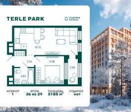 Продается квартира в ЖК Terle Park с 1 спальней на 26 этаже 29 этажного дома. Общая площадь: 37.85 кв.м. Высота потолков 2.95 м. Срок сдачи 3 квартал 2026 г. Вид на лес. Вид на реку. С отделкой White box. Эскроу-счет. Застройщик ГК "Садовое кольцо".