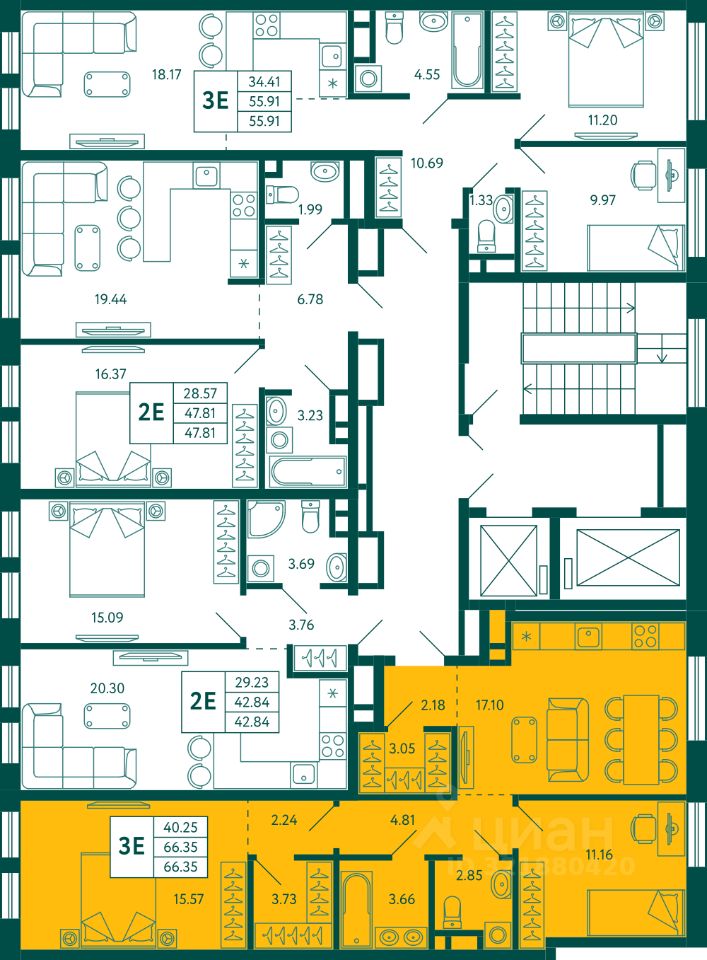 Продается квартира в ЖК Terle Park с 2 спальнями на 3 этаже 16 этажного дома. Общая площадь: 66.35 кв.м. Высота потолков 2.95 м. Срок сдачи 3 квартал 2026 г. Эскроу-счет. Застройщик ГК "Садовое кольцо".