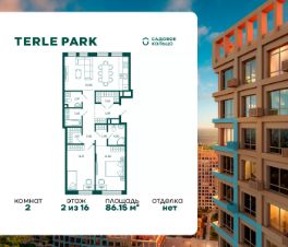 Продается квартира в ЖК Terle Park с 2 спальнями на 2 этаже 16 этажного дома. Общая площадь: 86.15 кв.м. Высота потолков 2.95 м. Срок сдачи 4 квартал 2025 г. Мастер-спальня. Вид на лес. Эскроу-счет. Застройщик ГК "Садовое кольцо".