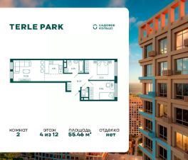Продается квартира в ЖК Terle Park с 2 спальнями на 4 этаже 12 этажного дома. Общая площадь: 55.46 кв.м. Высота потолков 2.95 м. Срок сдачи 4 квартал 2025 г. Вид на лес. Эскроу-счет. Застройщик ГК "Садовое кольцо".