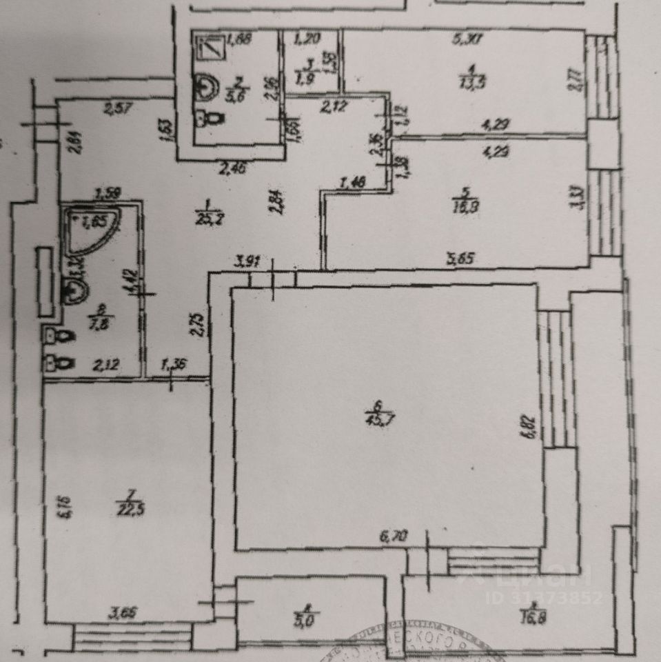 - Два больших санузла с душевыми кабинами 5,6 кв.м. и 7,8 кв.м.