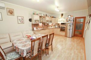 - Просторная кухня 22,5 кв.м. станет идеальным местом для кулинарных шедевров и семейных завтраков, с выходом на застекленную лоджию.