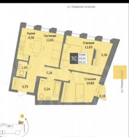 Трехкомнатная квартира, площадью 63 кв.м., свободная планировка, с отличными видовыми характеристиками.