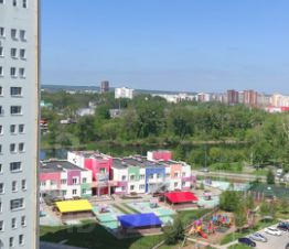 Окна выходят на сторону двора, детской игровой площадки, парка и сквера для прогулок.