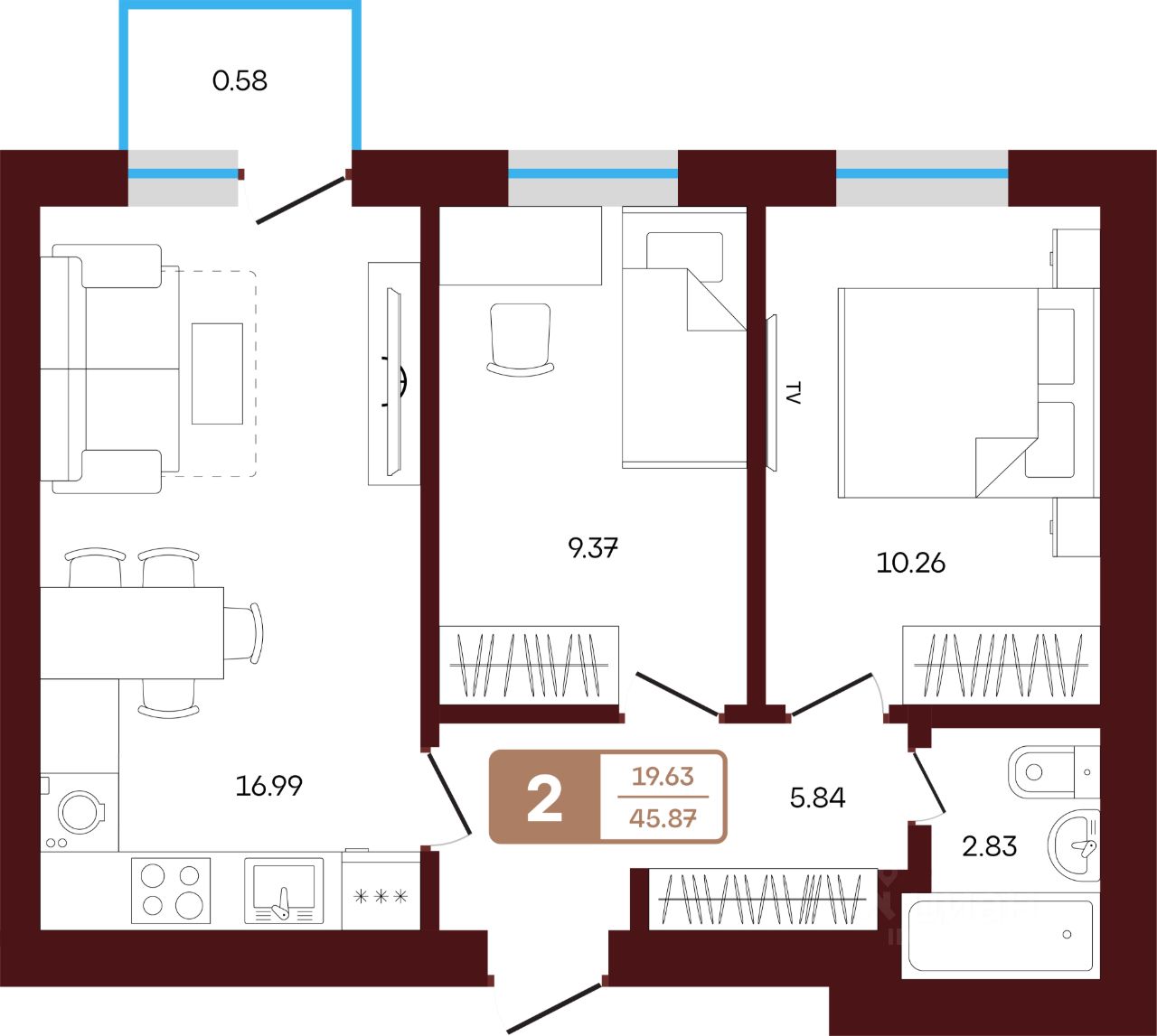 Продаётся 2-комнатная квартира в строящемся доме (литер 2), срок сдачи: II-кв. 2027, общей площадью 45.87 кв.м., на 2 этаже. Новый жилой комплекс "ЯРАТАУ" от застройщика "СЗ НВ - 1" расположен по адресу Россия, Республика Башкортостан, Иглинский район, село Акбердино, Газпромовская улица.