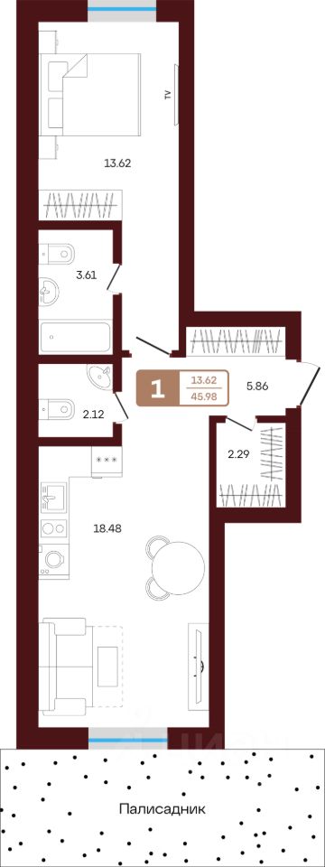 Продаётся 1-комнатная квартира в строящемся доме (литер 2), срок сдачи: II-кв. 2027, общей площадью 45.98 кв.м., на 1 этаже. Новый жилой комплекс "ЯРАТАУ" от застройщика "СЗ НВ - 1" расположен по адресу Россия, Республика Башкортостан, Иглинский район, село Акбердино, Газпромовская улица.