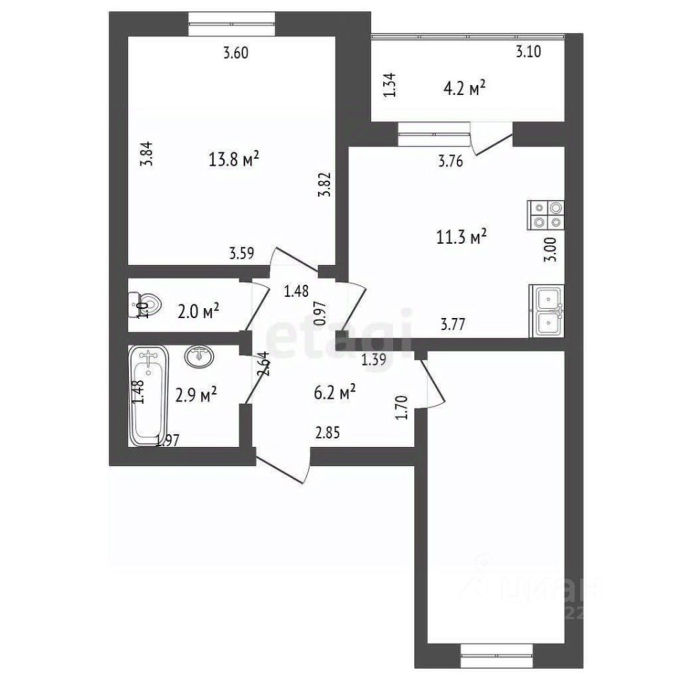 - Кухня - 11,3 кв.м