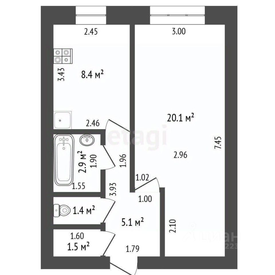 Просторная и удобная: Улучшенная планировка с большой кухней 8.4 м² и жилой комнатой 20.1 м².