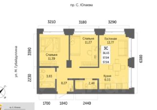 Продается УДАЧНАЯ трехкомнатная квартира-смарт в ЖК Урбаника Литер 3 (Зеленая роща) от надежного застройщика: дом построен, ведется отделка фасада. На 7 этаже малоэтажной 22-хэт. секции (32-хэт. секция другая!) жилого дома по ул. Губайдуллина, 2. В КРЫЛЕ ВСЕГО 5 КВАРТИР. Площадь 57/22,7/20 кв. м. Сдача в 1 кв.2026 года. Рядом парк Лесоводов, напротив сквер Губайдуллина, фитнес арена 3000, ТЦ Аркада, школы, дет. садики. До центра города 5 минут по пр. Салавата Юлаева.