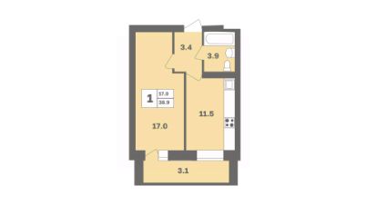 Общая площадь38,9 м²