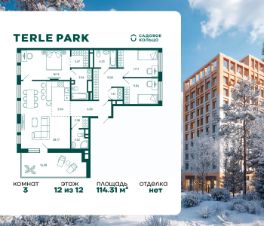 Продается квартира в ЖК Terle Park с 3 спальнями на 12 этаже 12 этажного дома. Общая площадь: 114.31 кв.м. Высота потолков 2.9 м. Срок сдачи 4 квартал 2025 г. Окна выходят на 3 стороны. Мастер-спальня. Терраса или Патио. Вид на лес. Эскроу-счет. Застройщик ГК "Садовое кольцо".