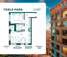 Продается квартира в ЖК Terle Park с 1 спальней на 10 этаже 29 этажного дома. Общая площадь: 43.3 кв.м. Высота потолков 2.95 м. Срок сдачи 3 квартал 2026 г. Вид на лес. Вид на реку. С отделкой White box. Эскроу-счет. Застройщик ГК "Садовое кольцо".