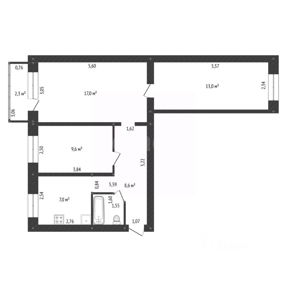 Квартира - распашонка, с отличной энергетикой , общей площадью 57.5 кв.м., окна смотрят на восточную и западную стороны.